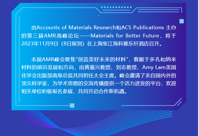 2023年11月9日,由Accounts of Materials Research和ACS Publications 主辦的第三屆AMR高峰論壇——Materials for Better Future在上海召開(kāi)。