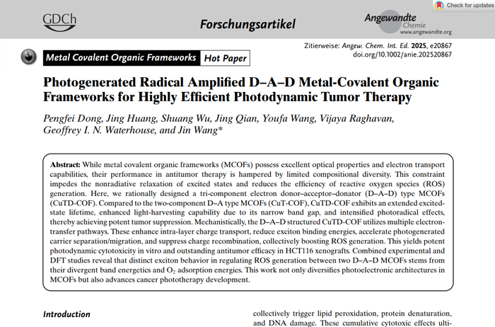 Photogenerated Radical Ampli?ed D–A–D Metal-Covalent Organic Frameworks for Highly Ef?cient Photodynamic Tumor Therapy