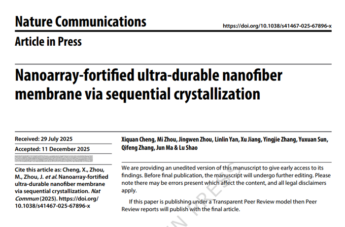 Nanoarray-forti?ed ultra-durable nano?ber membrane via sequential crystallization