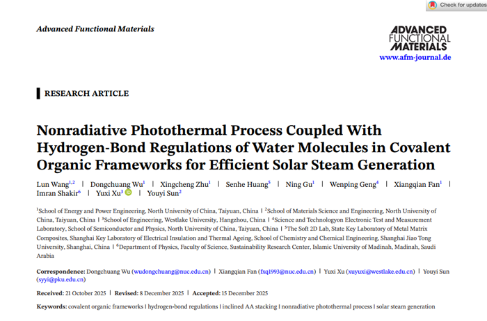 Nonradiative Photothermal Process Coupled With Hydrogen-Bond Regulations of Water Molecules in Covalent Organic Frameworks for Efficient Solar Steam Generation